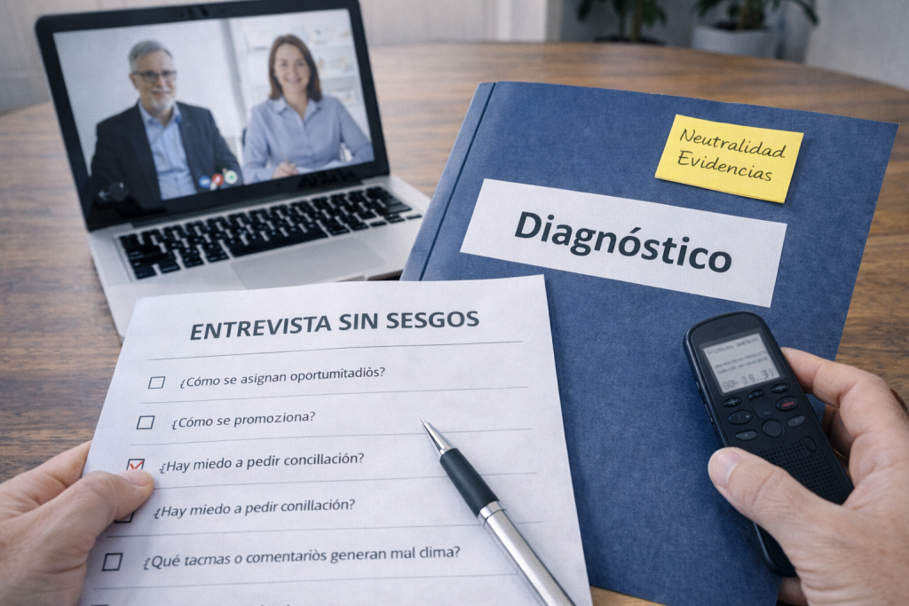 Si quieres, preparamos contigo un pack completo de entrevistas sin sesgos y cuestionario: guion listo, batería de preguntas adaptada a vuestro sector y un formato de evidencias para que el diagnóstico sea claro, útil y defendible.